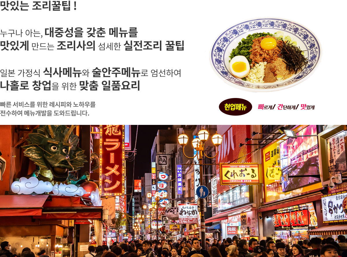 기본메뉴, 현업활용 식사와 안주메뉴 실습으로 빠른 적응력 강화 훈련