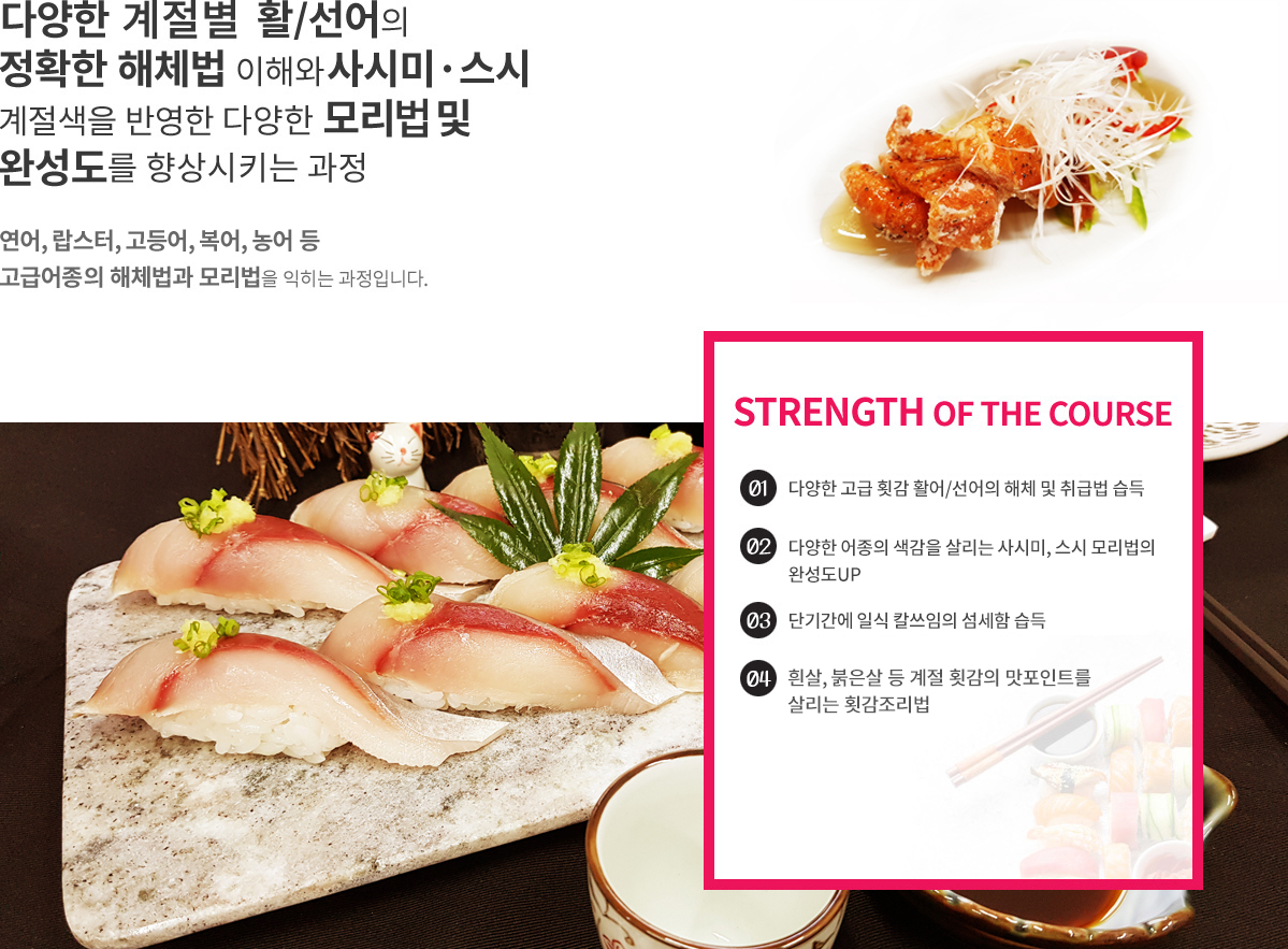 26가지 해체과제의 반복 숙련과 58가지 일식메뉴의 실전실습