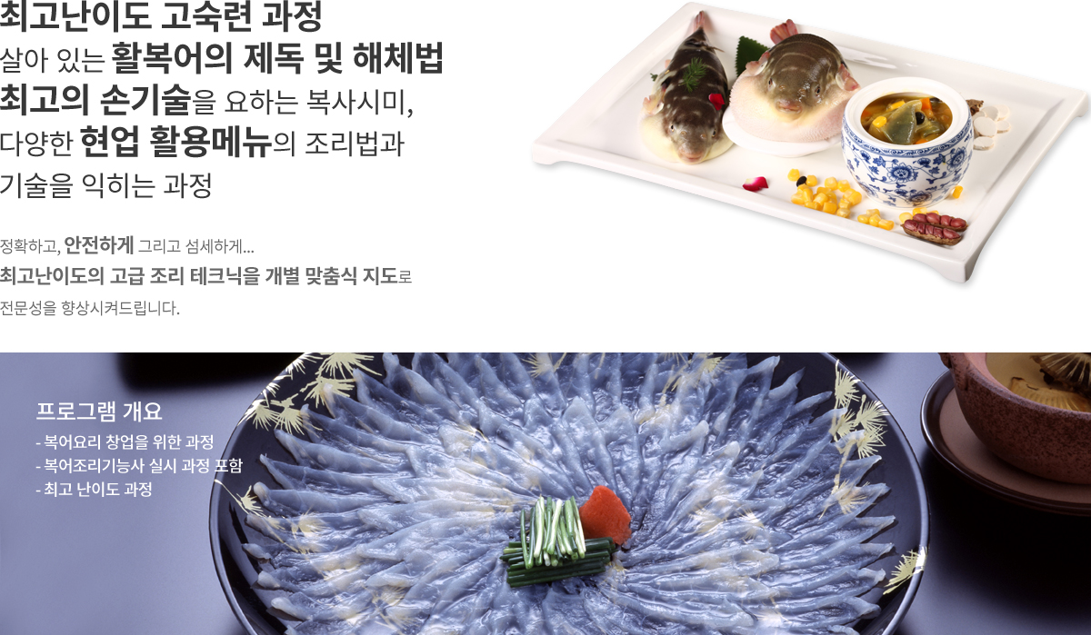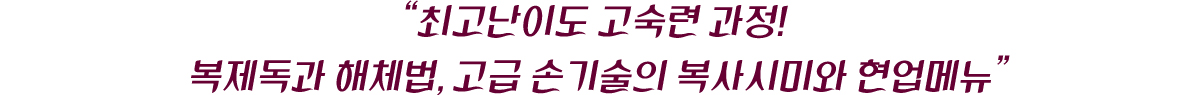 26가지 해체과제의 반복 숙련과 58가지 일식메뉴의 실전실습