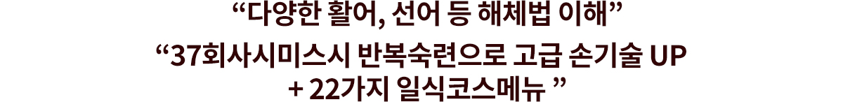 칼의 섬세함과 고급 손기술에 대한 숙련도를 높여 빠른 취업과 현장적응을 위한 특화 과정