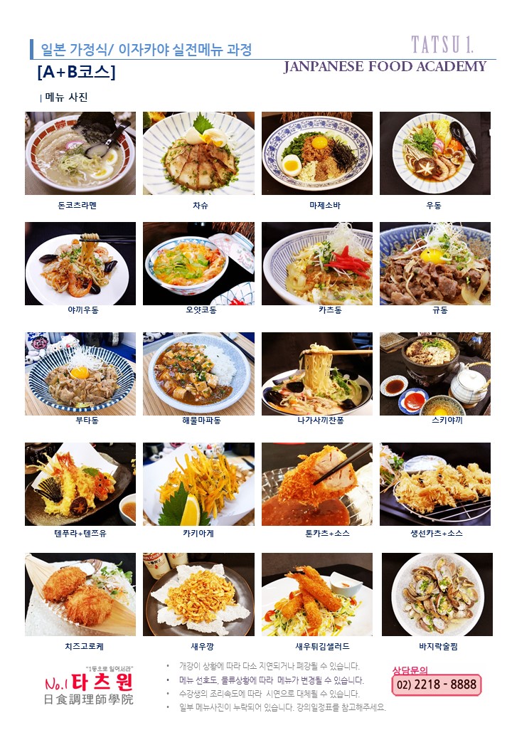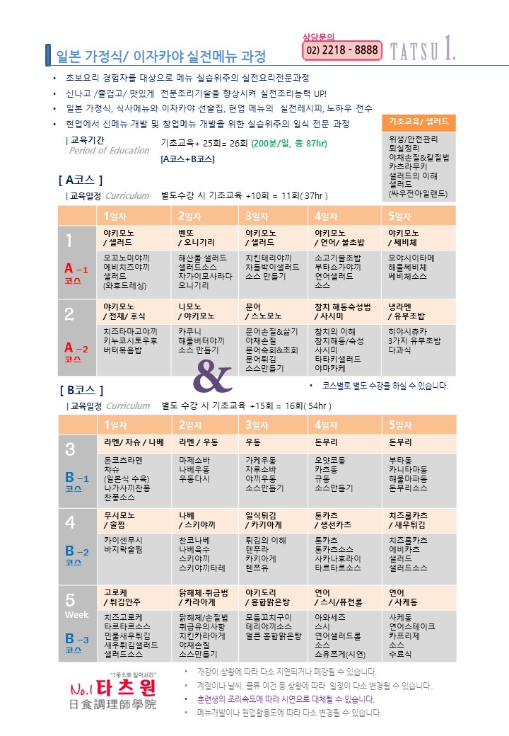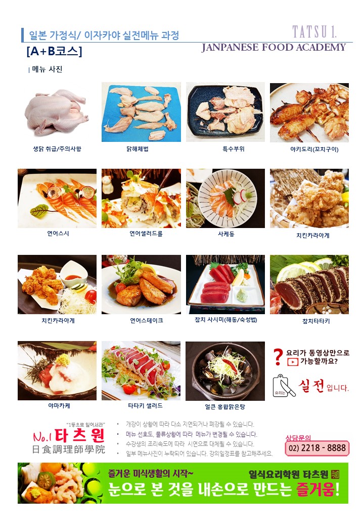 오전/저녁반] 일본가정식/이자카야 실전메뉴 과정[A+B코스]