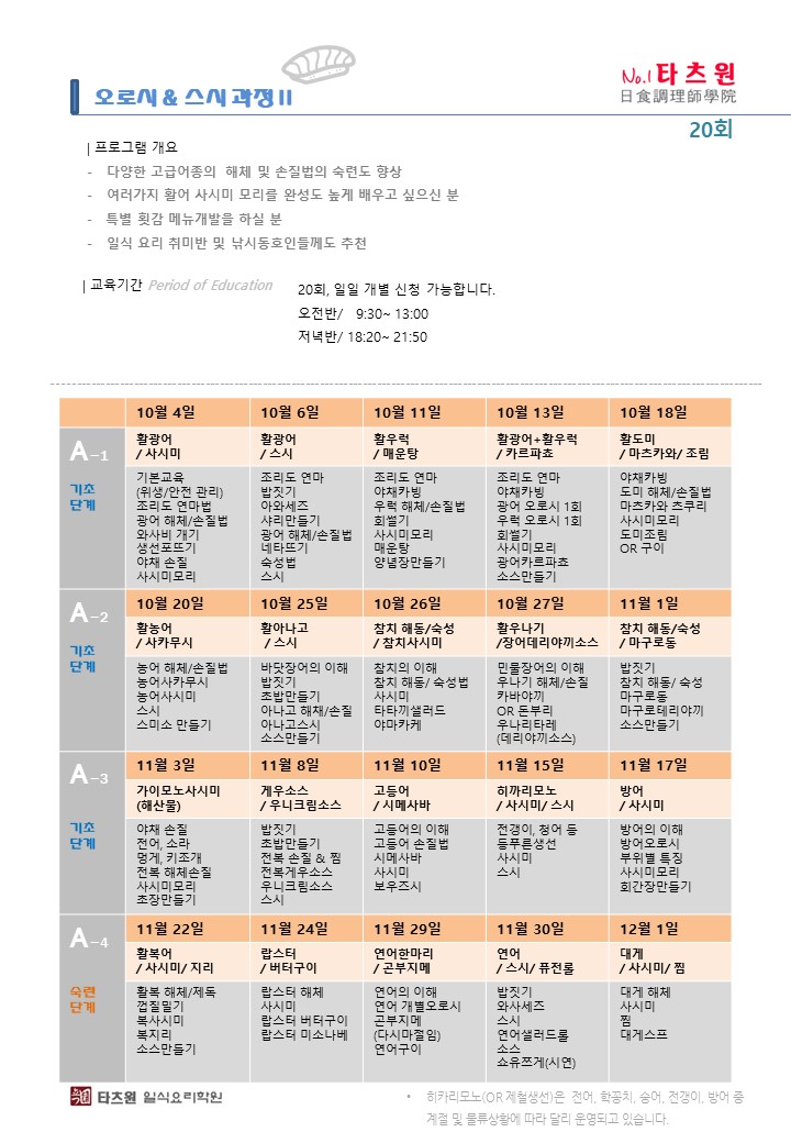 • 오전반 09:30 ~, 오후반 14:00 ~ 18:00, 저녁반 18:20 ~ 10:00