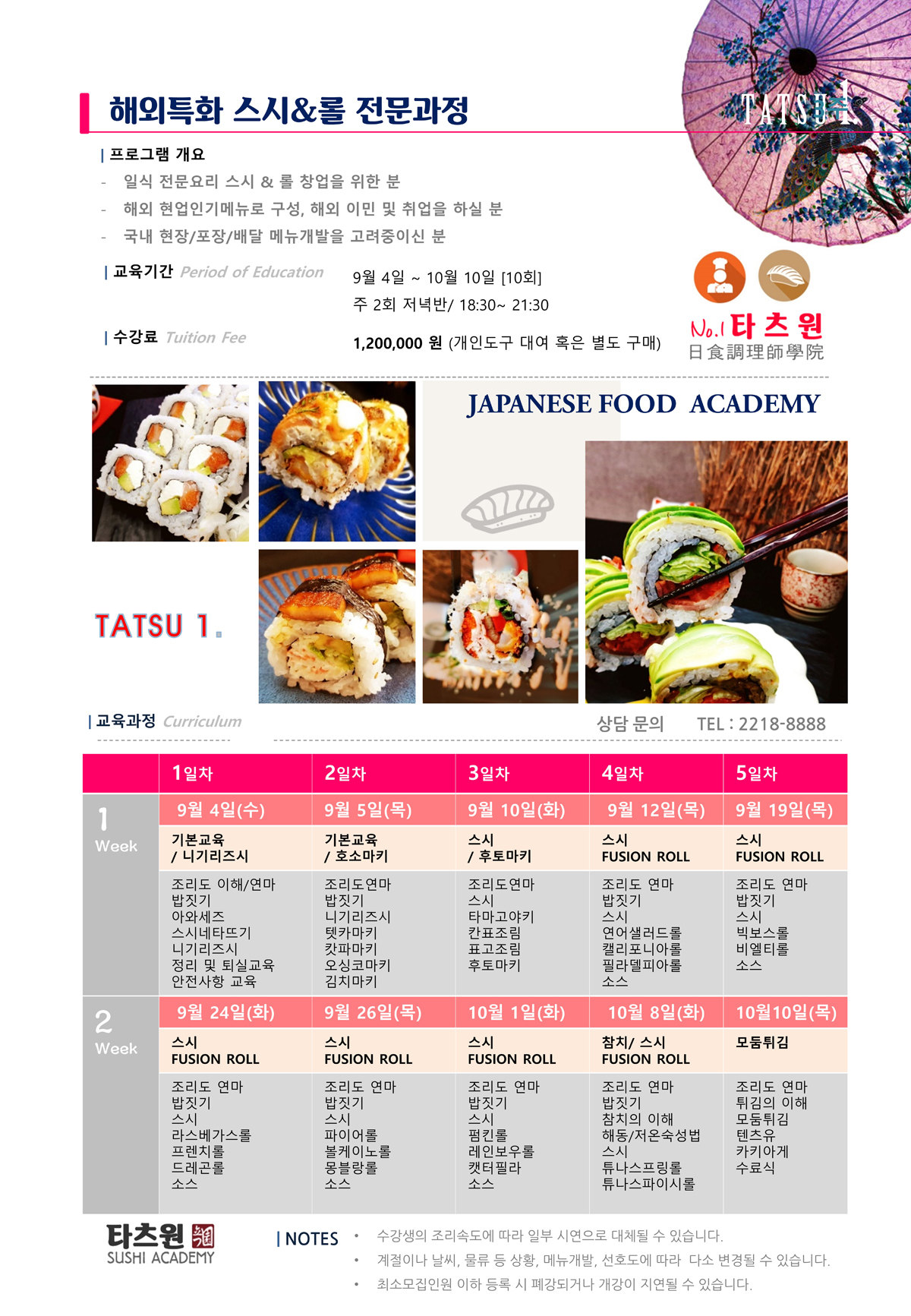 주 2회 저녁반] 해외특화 스시&롤 특강
