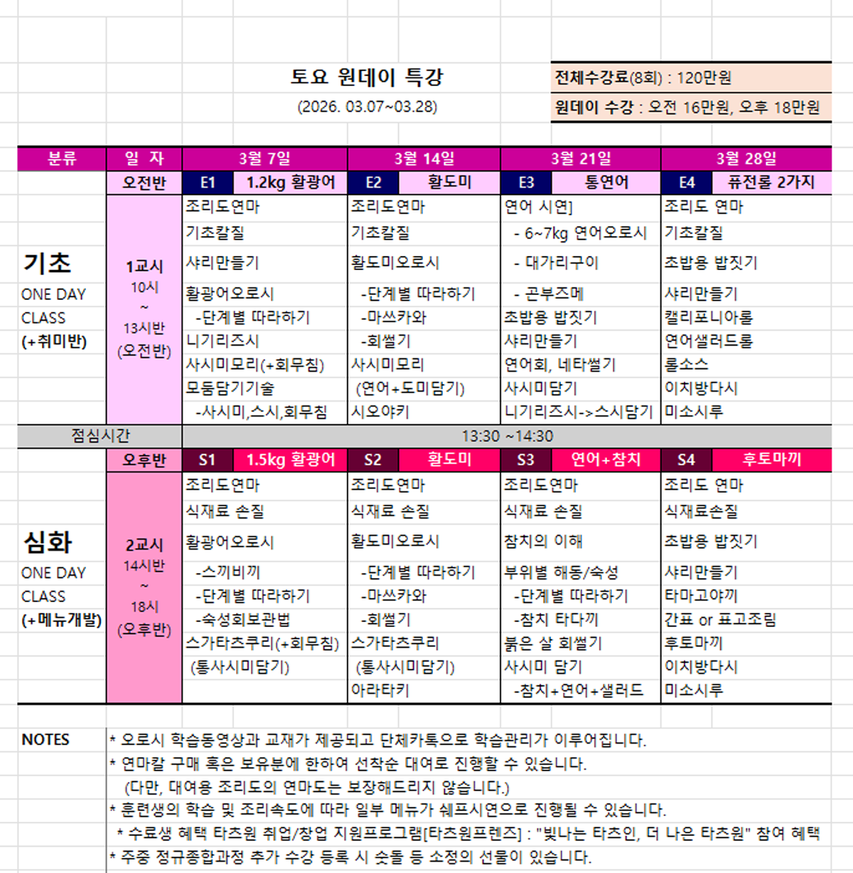토요특강] 인기있는 메뉴만 골랐다~ 토요특강 개강