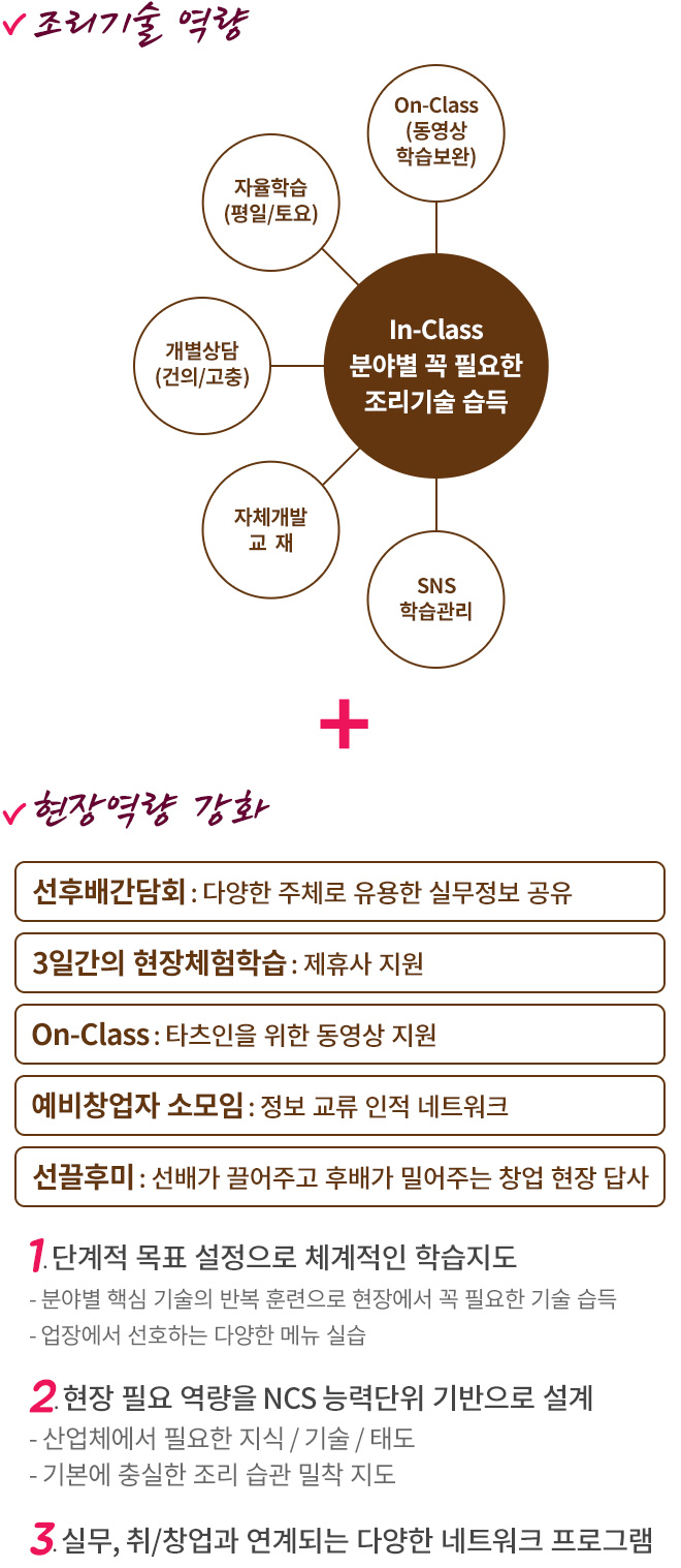 기본에 충실하면서 분야별 현장 실무 조리기술을 집중 훈련하는 고품질 훈련운영체계