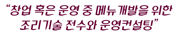 유행과 트랜드에 민감한 메뉴가 아닌 대중성을 가진 메뉴로 대단한 성공보다“실패하지 않는 메뉴”를 위한 메뉴 개발을 도와드립니다.