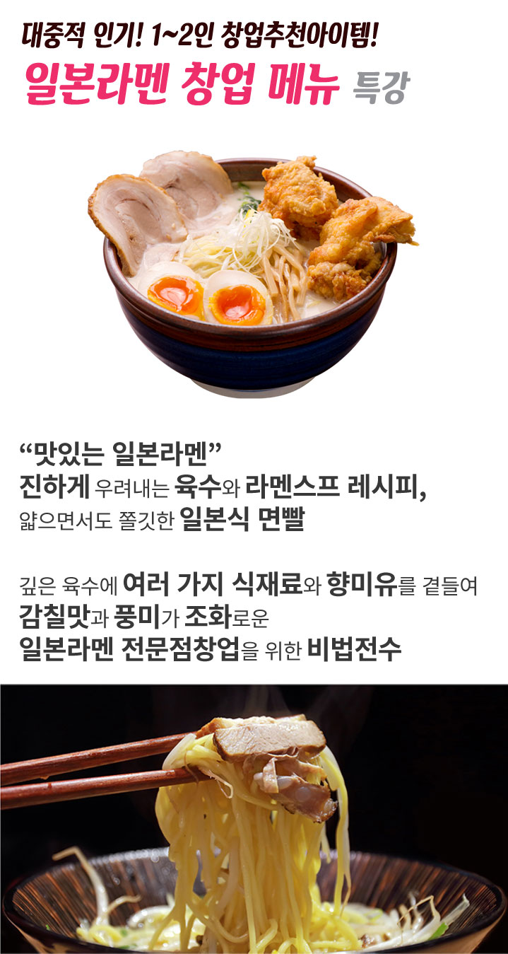 - 일본라멘 전문점 창업을 위한 조리비법을 전수하여 실전조리능력강화