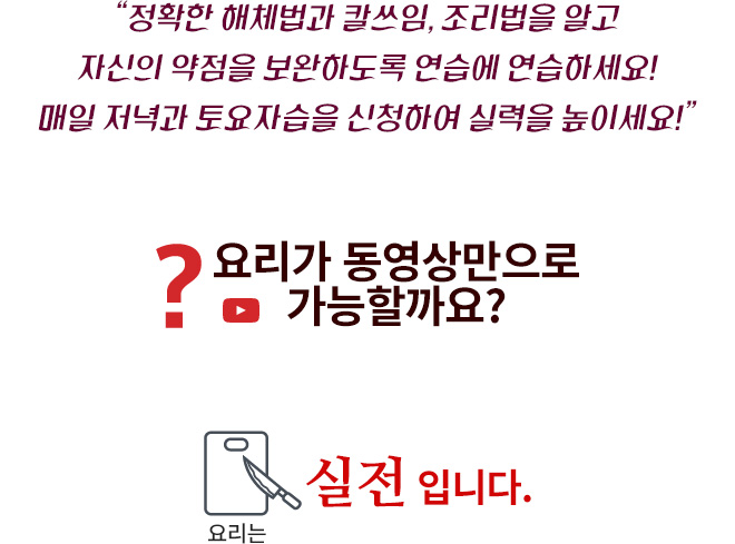 26가지 해체과제의 반복 숙련과 58가지 일식메뉴의 실전실습